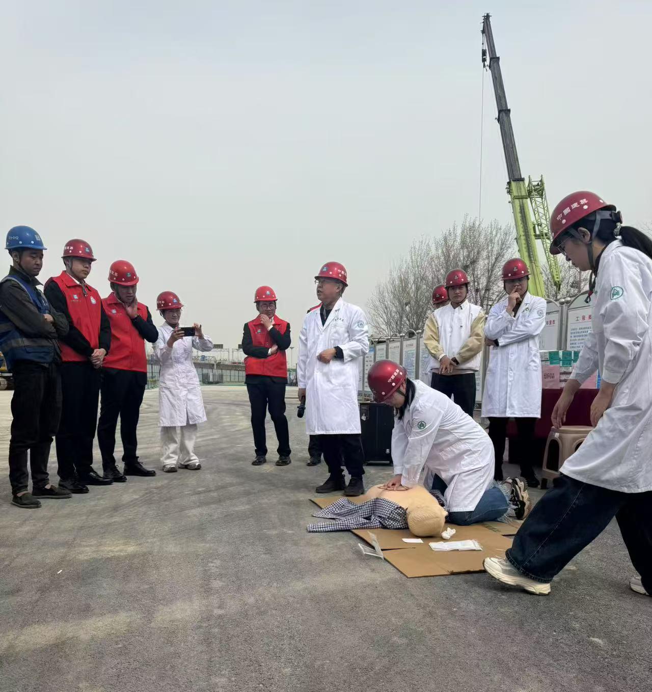 在活动现场,医务人员还给项目建设者培训了急救自救知识,详细讲解了心肺复苏的基本原理、操作步骤和注意事项。通过模拟人进行现场演示,让建设者们直观了解了心肺复苏的全过程。鼓励建设者们积极参与实操练习,争取每个人都能够熟练掌握这项救命技能。在实操环节,大家纷纷上前尝试,通过反复练习,逐渐掌握了心肺复苏的要领,对这项技能有更深入的了解。项目部党支部书记张宝峰表示,未来将继续加强工地建设者的急救自救能力培训,定期组织相关活动和演练,为工地的安全生产提供有力保障。他也希望建设者们能够时刻保持警惕,加强自我保护意识,共同营造一个安全、和谐的工作环境。