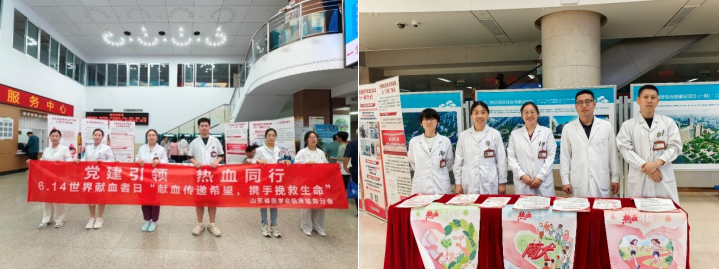 山东大学齐鲁医院输血科党支部与山东省血液中心党委开展党建联建活动,共同在爱心献血屋设立党员志愿服务站,为市民提供健康咨询、血型检测等便民服务。山东第一医科大学第一附属医院输血科党支部联合多个支部开展联合义诊,讲解合理用血、自体输血等知识,并现场发放科普手册。