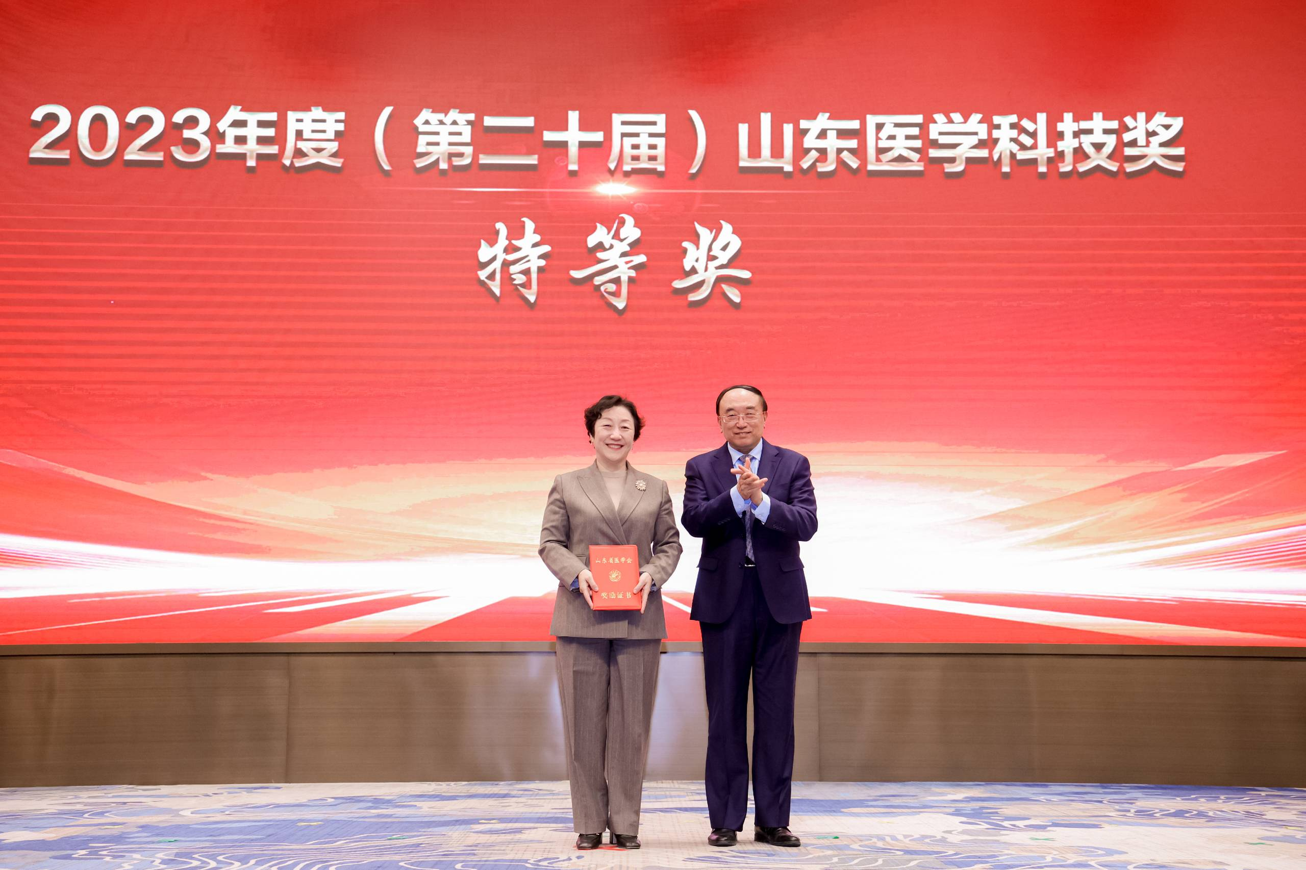 于金明院士为获得山东医学科技奖特等奖的代表颁奖