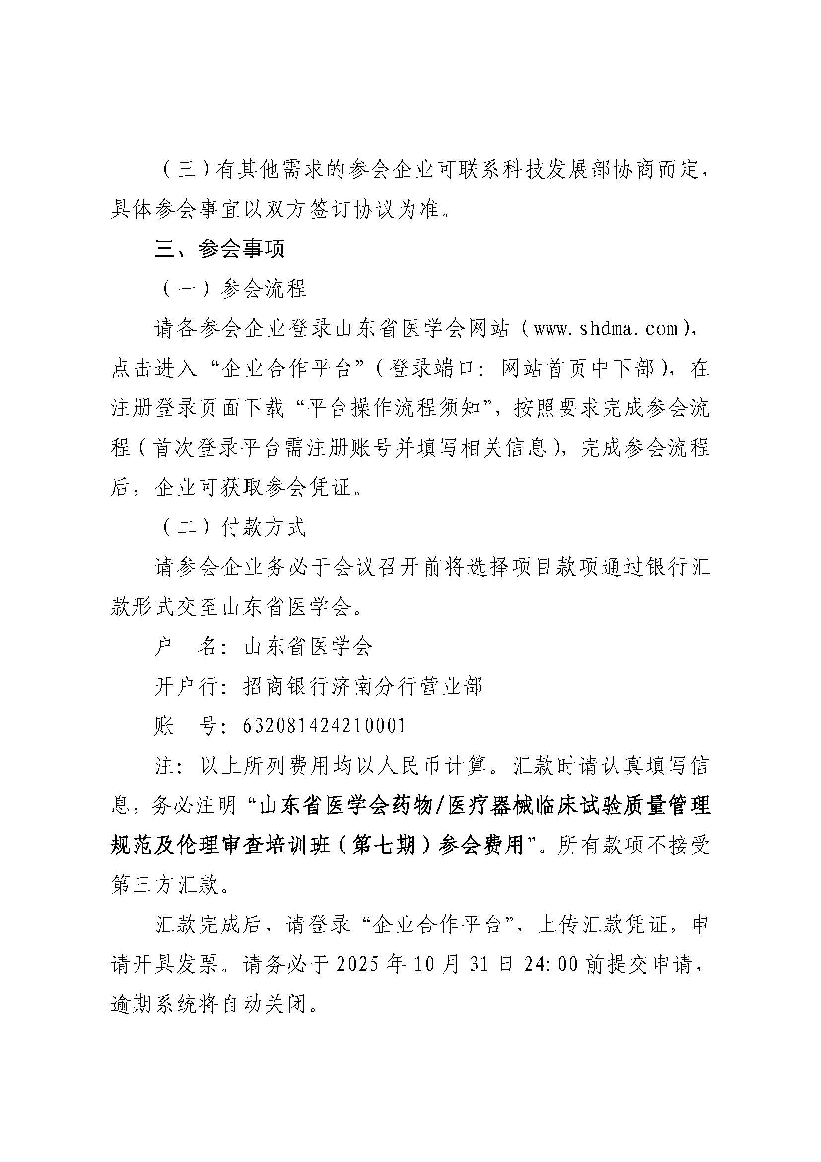 山东省医学会药物 医疗器械临床试验质量管理及伦理审查培训班(第七期)企业参会通知