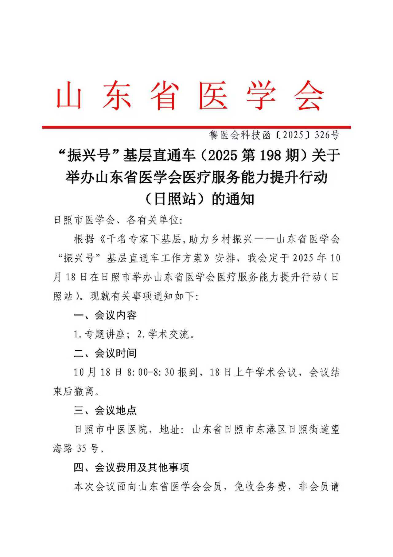 "振兴号"基层直通车(2025第198期)关于举办山东省医学会医疗服务能力提升行动(日照站)的通知
