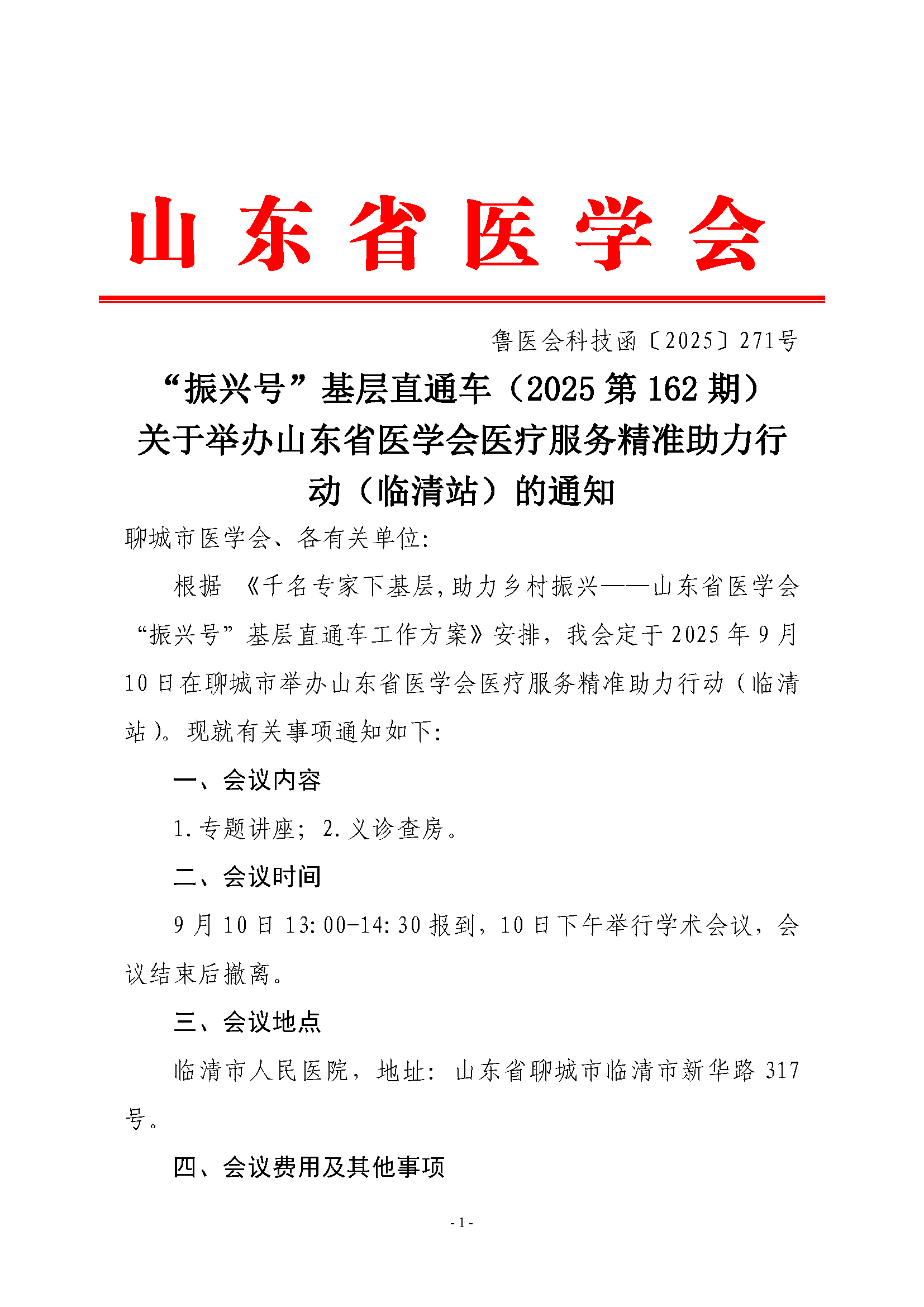 “振兴号”基层直通车(2025第162期)关于举办山东省医学会医疗服务精准助力行动(临清站)的通知