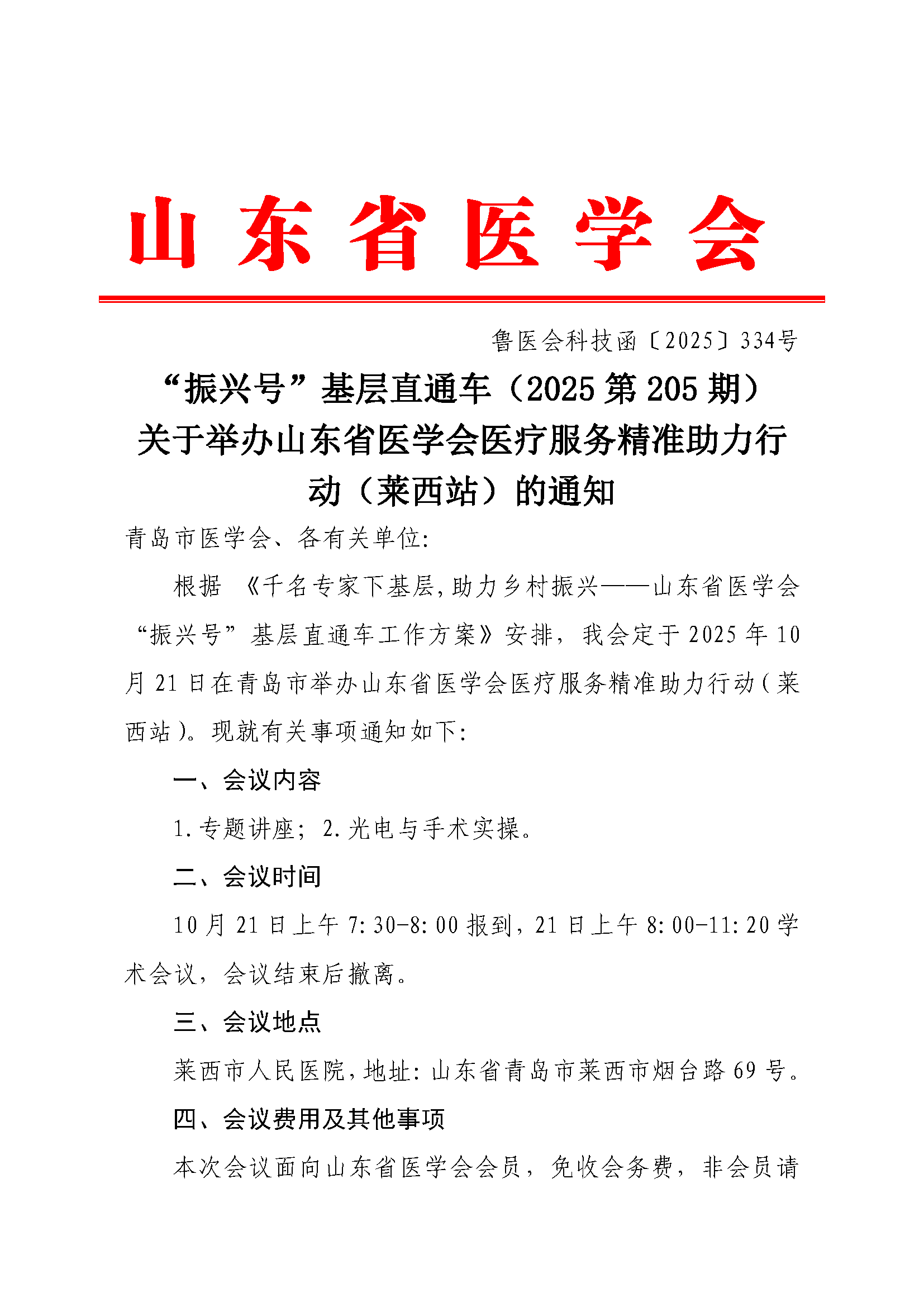 “振兴号”基层直通车(2025第205期)关于举办山东省医学会医疗服务精准助力行动(莱西站)的通知