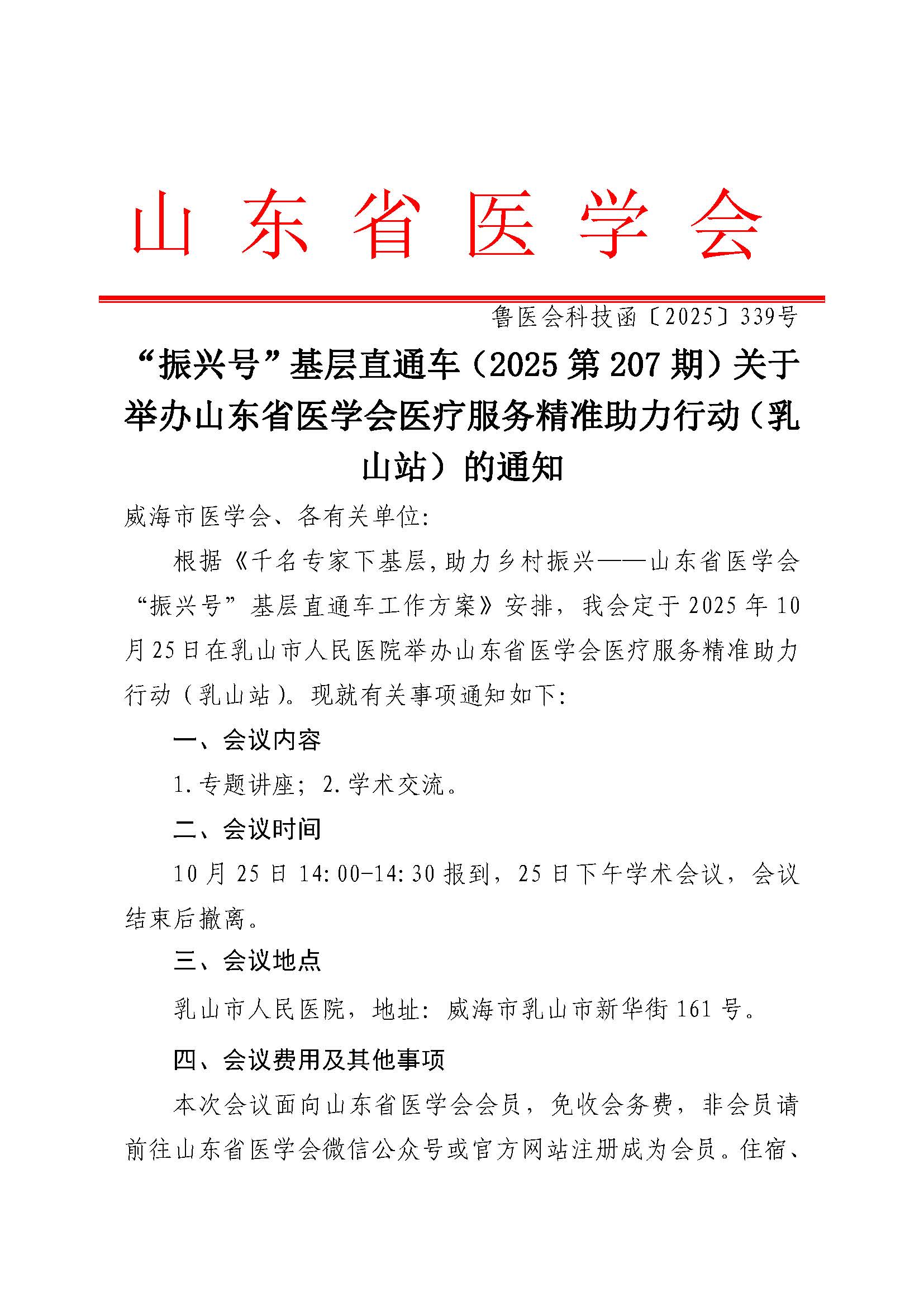 “振兴号”基层直通车(2025第207期)关于举办山东省医学会医疗服务精准助力行动(乳山站)的通知