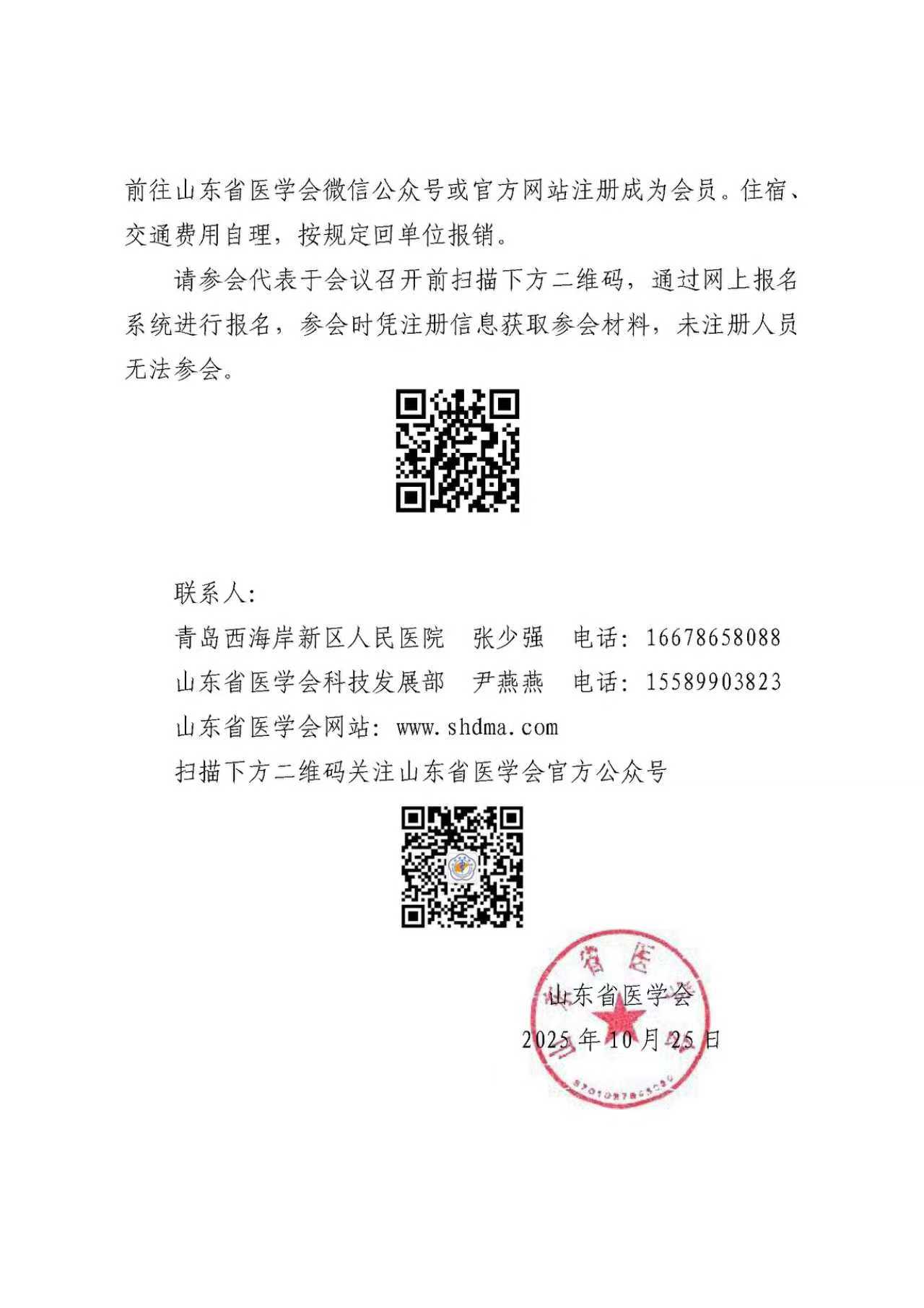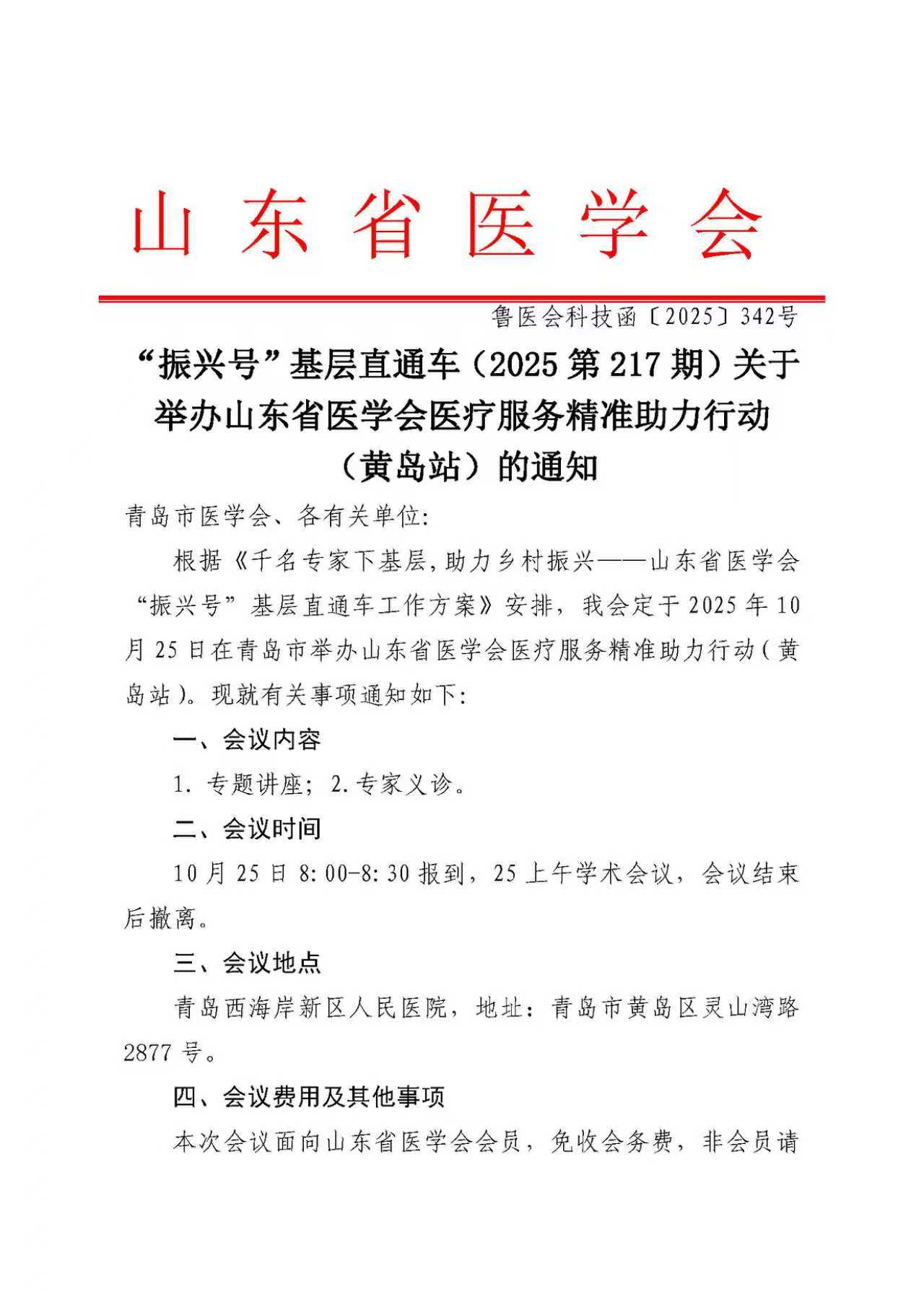 “振兴号”基层直通车(2025第217期)关于举办山东省医学会医疗服务精准助力行动(黄岛站)的通知