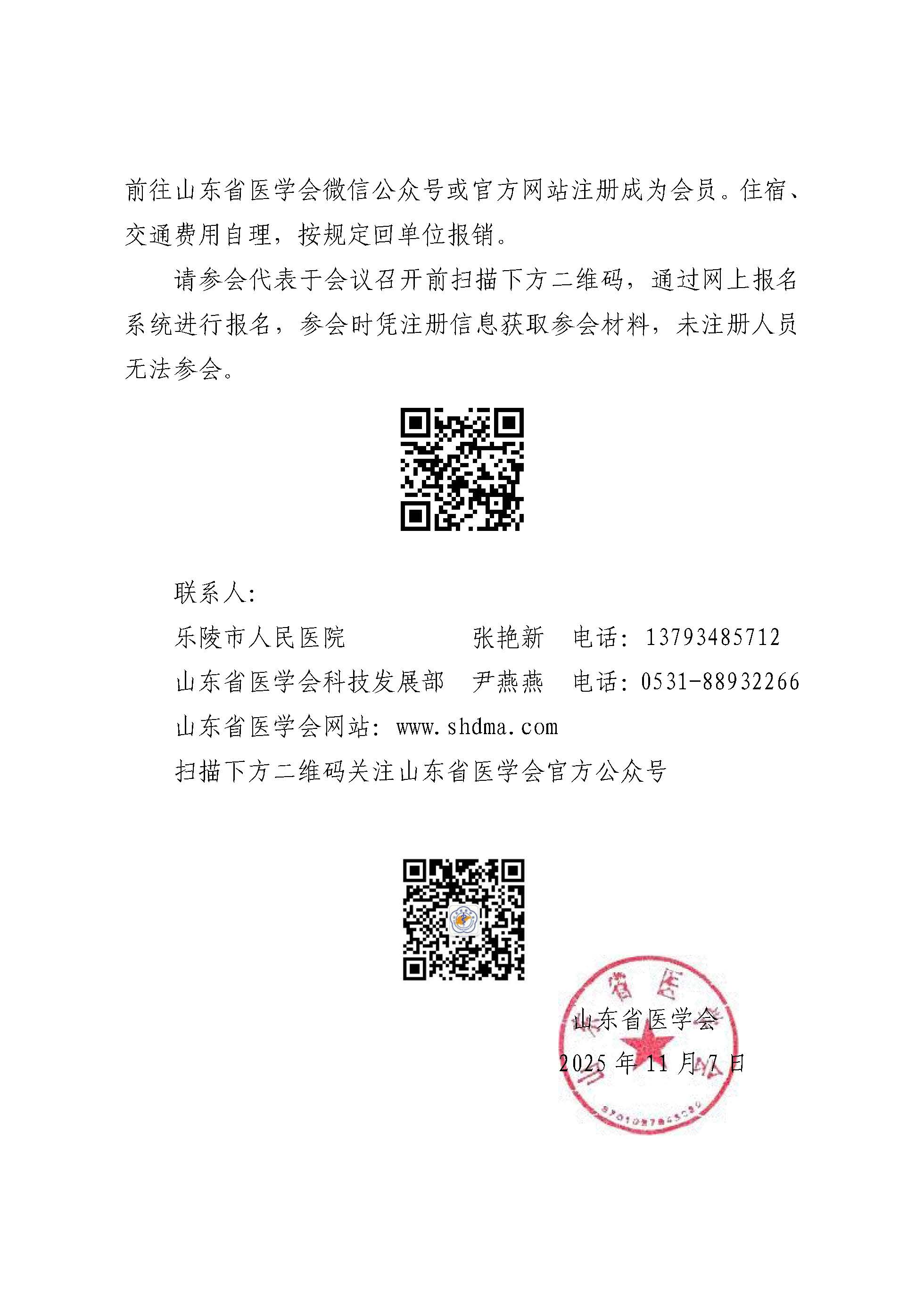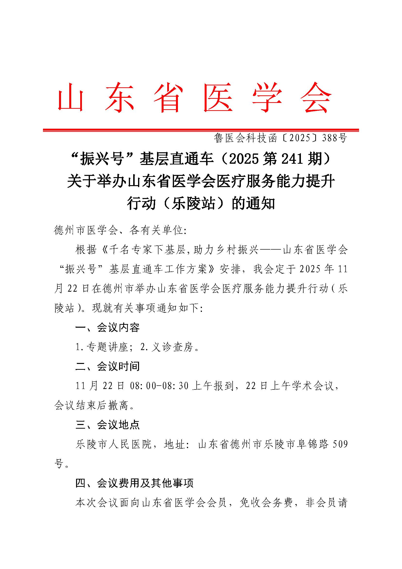 “振兴号”基层直通车(2025第241期)关于举办山东省医学会医疗服务能力提升行动(乐陵站)的通知