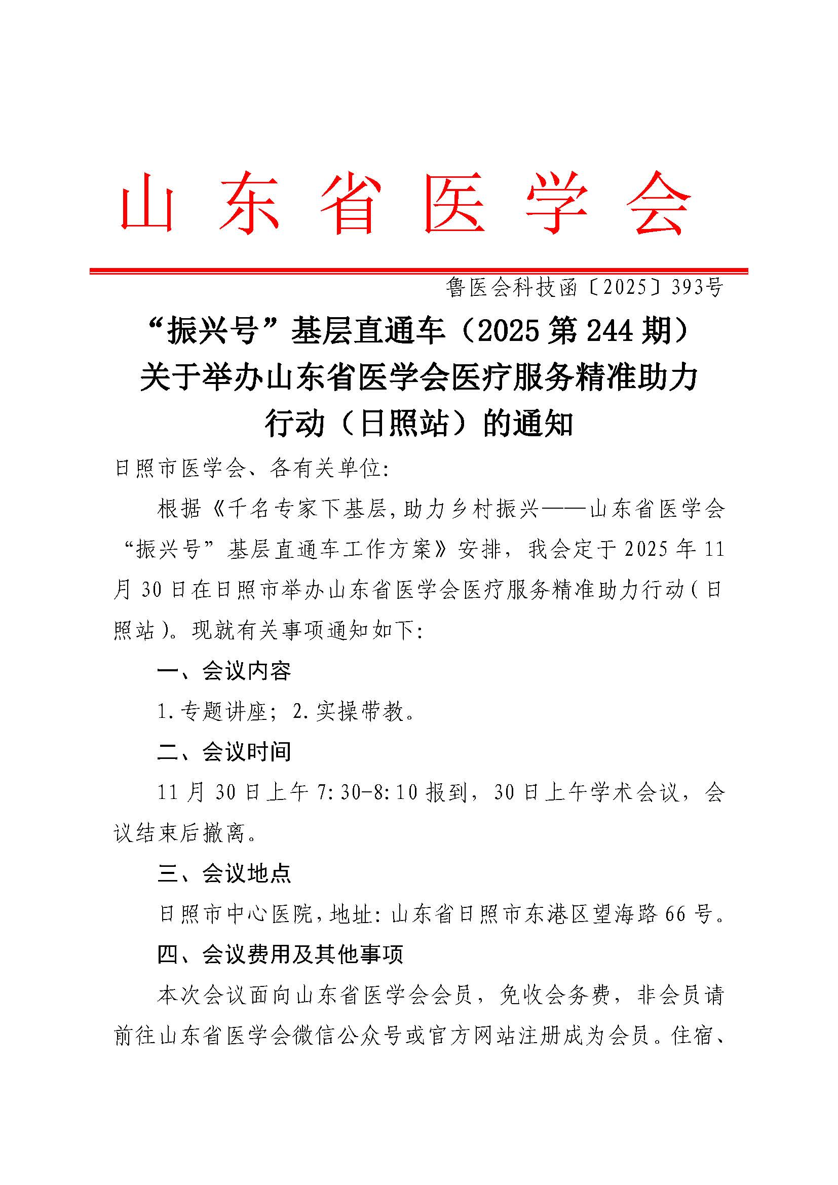 “振兴号”基层直通车(2025第244期)关于举办山东省医学会医疗服务精准助力行动(日照站)的通知