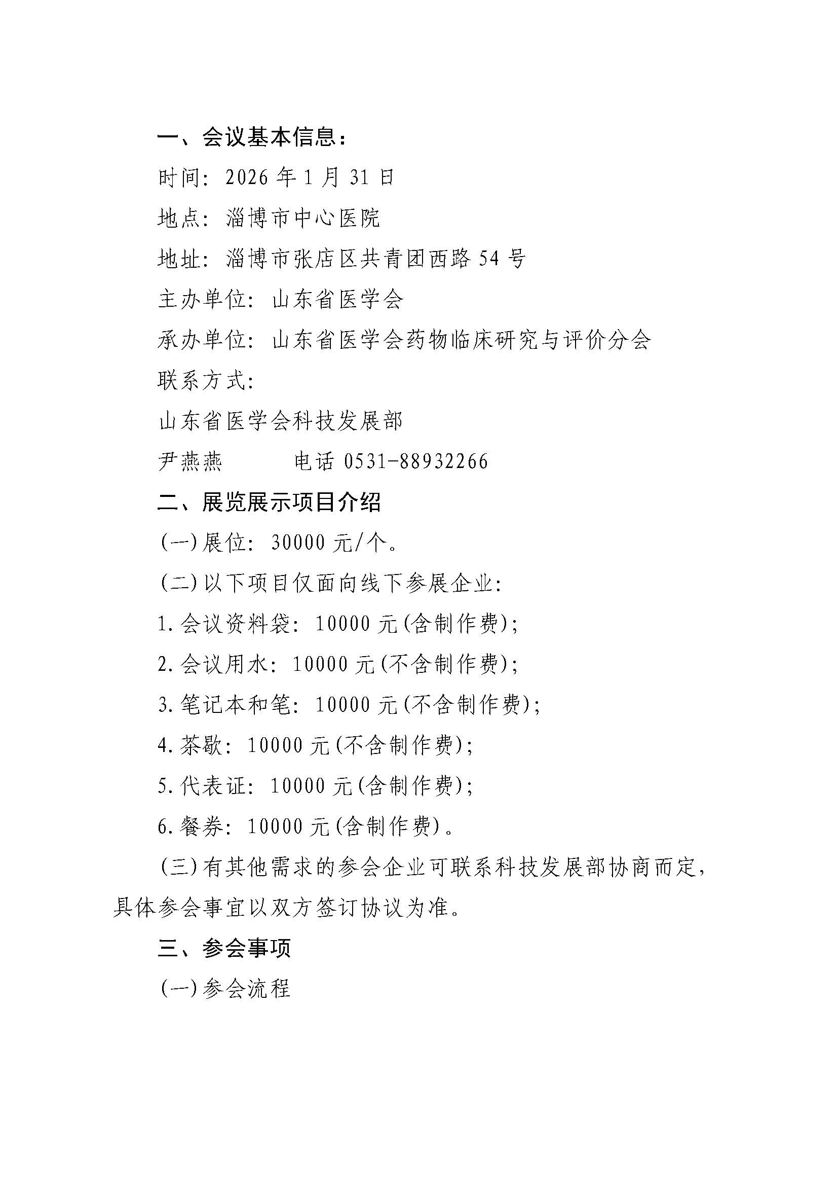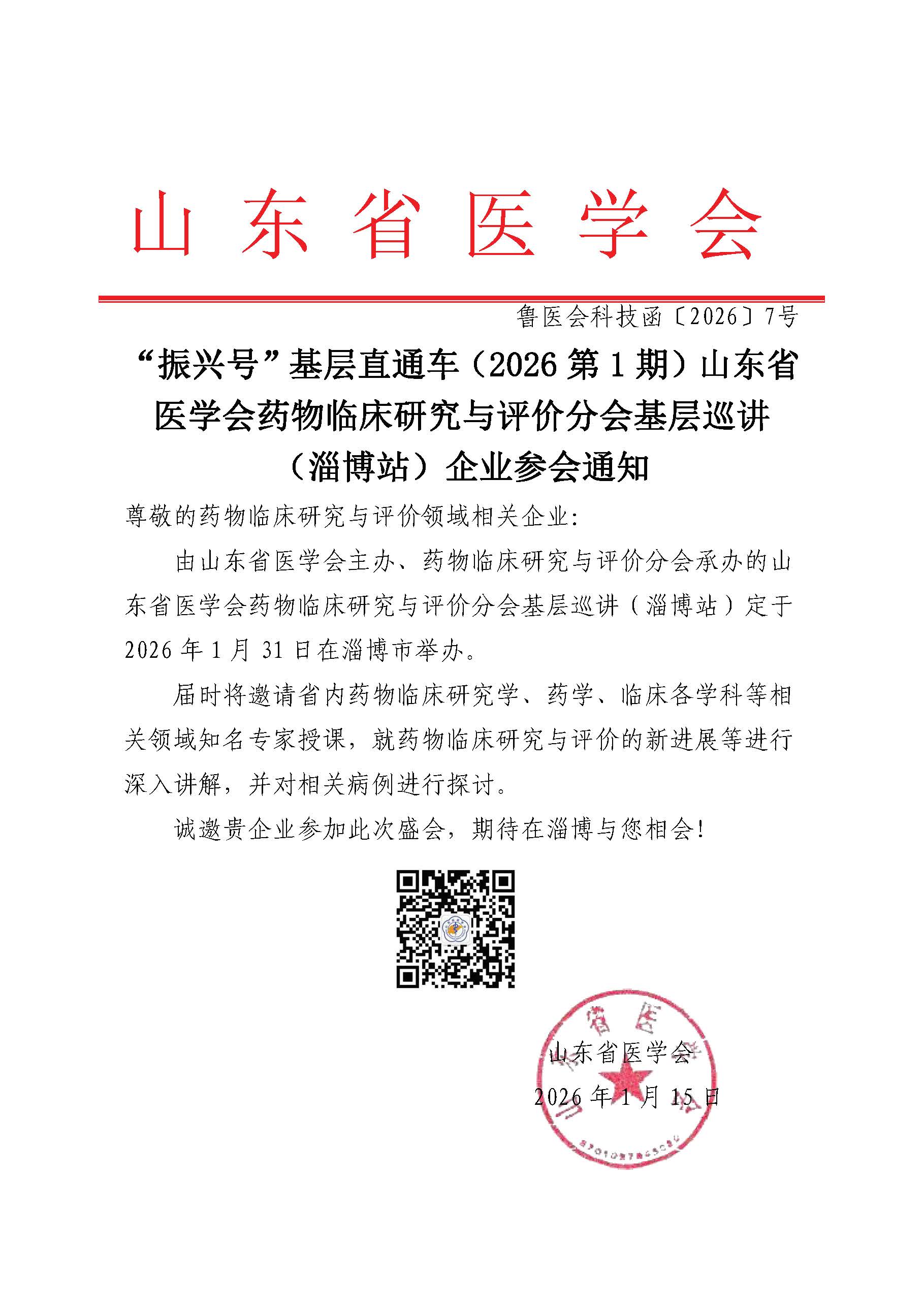 “振兴号”基层直通车(2026第1期)山东省医学会药物临床研究与评价分会基层巡讲(淄博站)企业参会通知