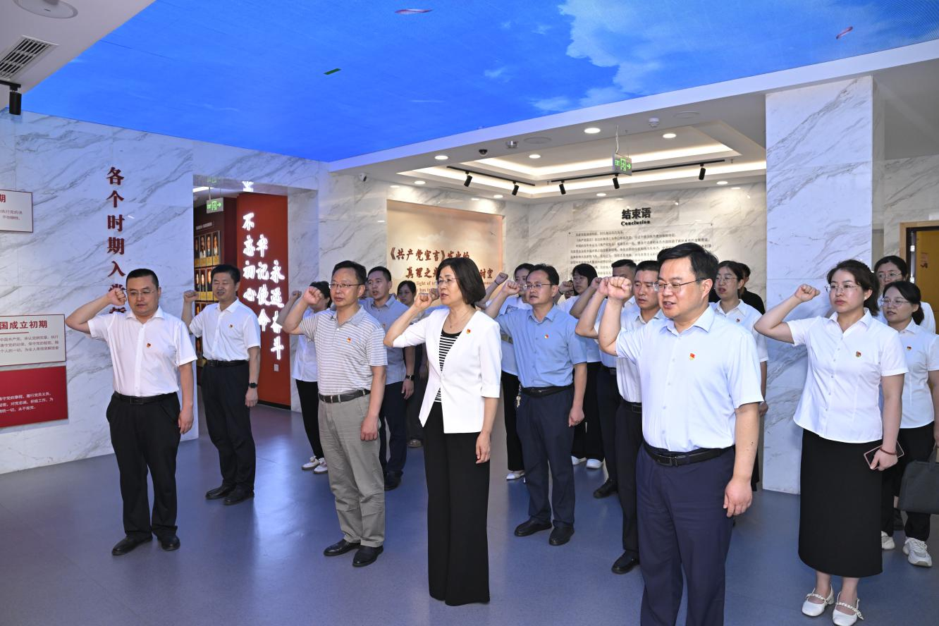 启动会后,与会领导与东营市卫生健康委等部分党员赴中共刘集支部旧址纪念馆开展“忆峥嵘守初心,护健康担使命”联合共建主题党日活动,通过现场参观展陈、听取讲解并观看珍贵历史影像资料,重温革命历史,随后,全体党员面向党旗,重温入党誓词,铿锵有力的誓言表达了不忘初心、牢记使命的坚定信念,进一步增强了党性修养。