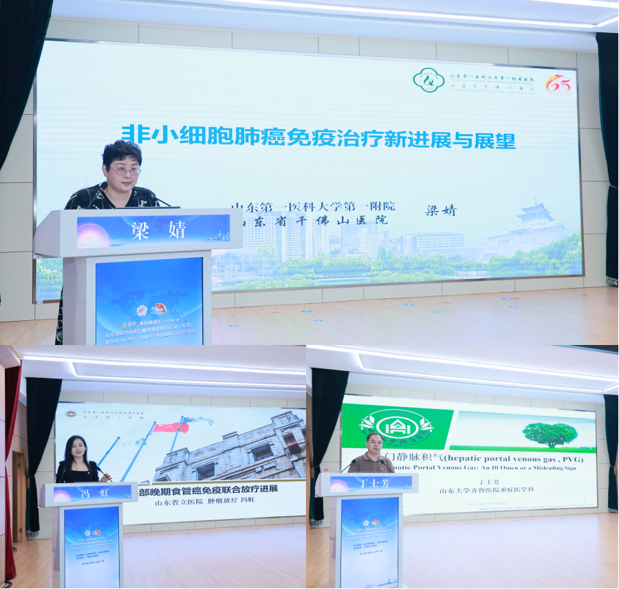 专题培训环节,山东省医学会肿瘤学分会副主任委员、山东第一医科大学第一附属医院肿瘤中心副主任梁婧,山东省医学会精准医学分会青年学组副组长、山东第一医科大学附属省立医院肿瘤放疗科主任医师冯虹,山东大学齐鲁医院急危重症医学中心副主任丁士芳围绕肿瘤精准诊疗主题,分别就《非小细胞肺癌免疫治疗进展》《食管癌免疫联合放疗进展》《门静脉积气的危害与治疗》进行系统授课,广饶县人民医院副院长周荣兵主持。200余名基层医务人员现场参加培训,线上参训学员近3000人。