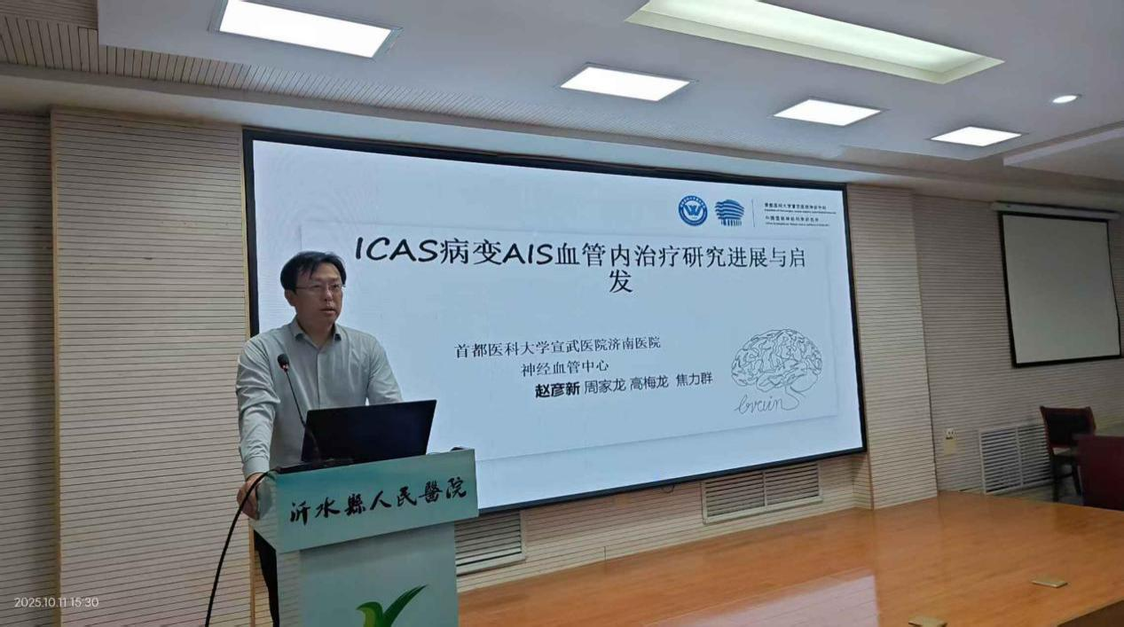 专题讲座环节,山东省医学会神经内科分会候任主任委员、山东第一医科大学附属省立医院神经内科党支部书记、副主任孙钦建,山东第一医科大学附属济南市中心医院神经内科副主任赵彦新,分别围绕急性缺血性卒中及ICAS病变的诊断和治疗进行授课,50余名医务人员参与学习。