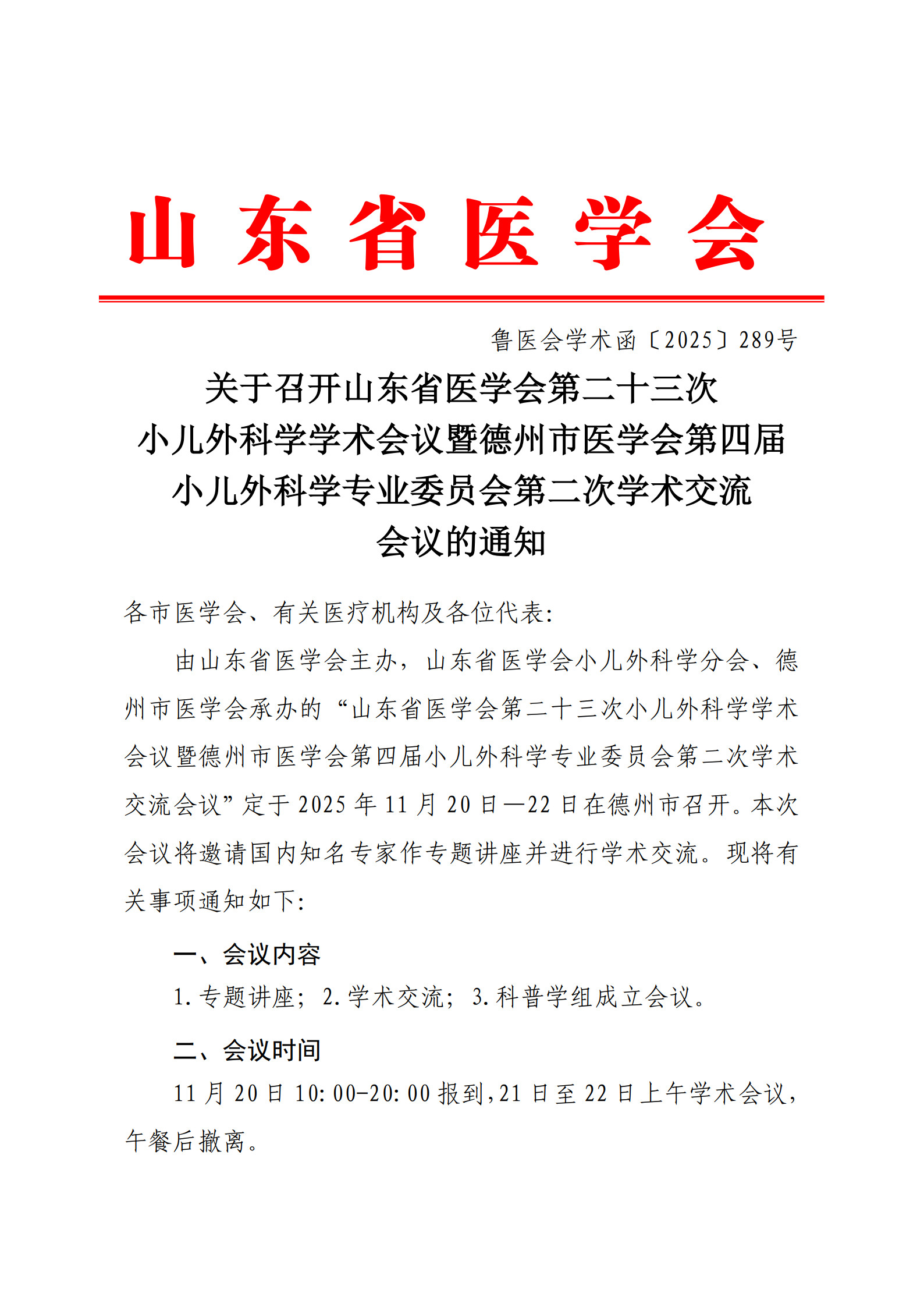 关于召开山东省医学会第二十三次小儿外科学术会议暨德州市医学会第四届小儿外科学专业委员会第二次学术交流会议的通知