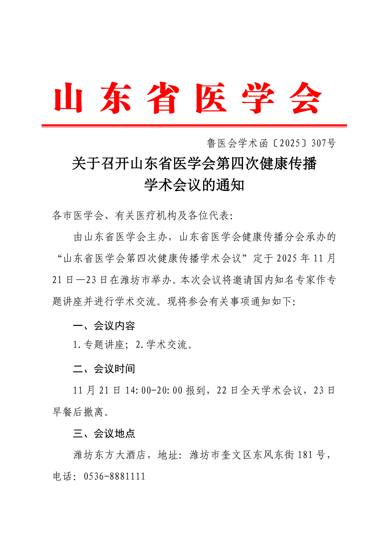 关于召开山东省医学会第四次健康传播学术会议的通知