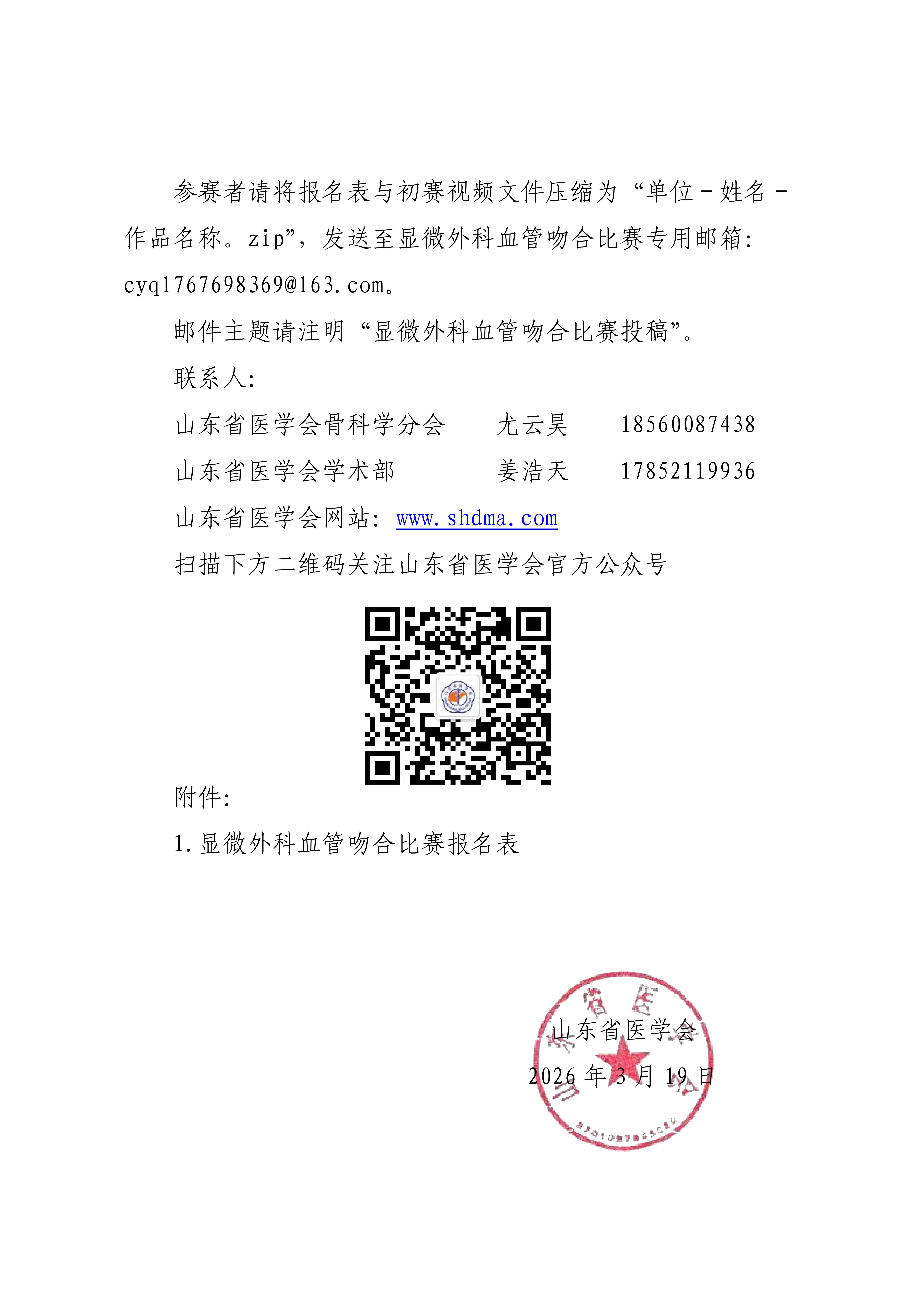关于举办山东省医学会骨科学分会首届显微外科血管吻合比赛的通知