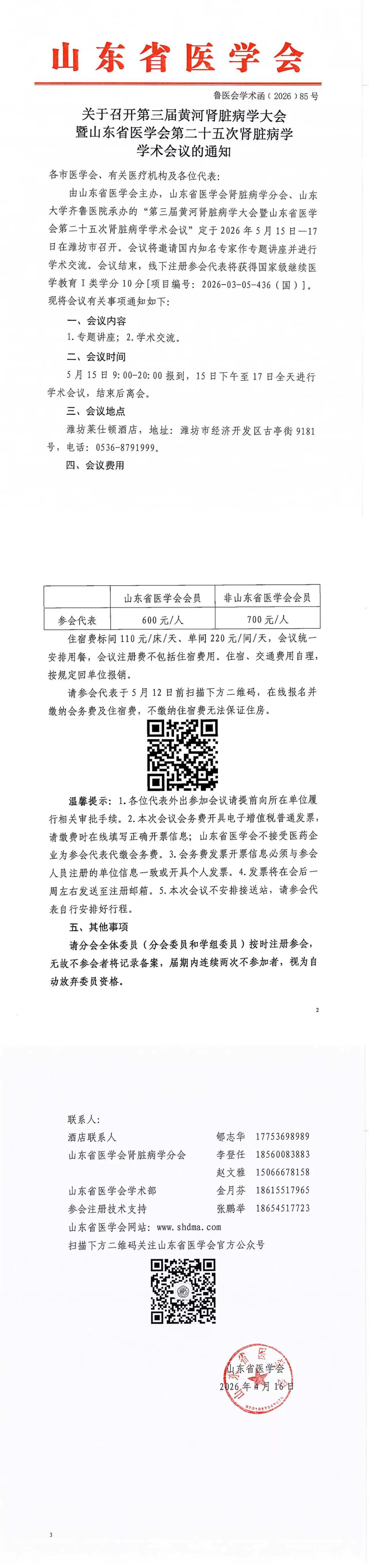关于召开第三届黄河肾脏病学大会暨山东省医学会第二十五次肾脏病学学术会议的通知
