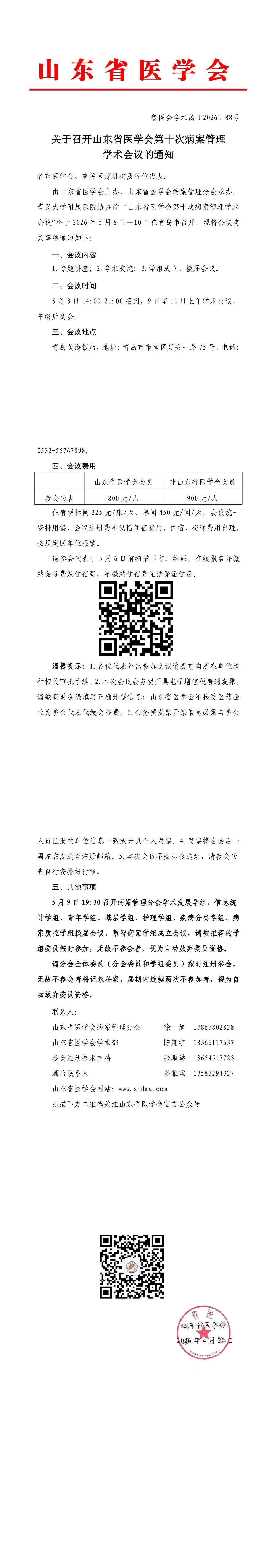 关于召开山东省医学会第十次病案管理学术会议的通知