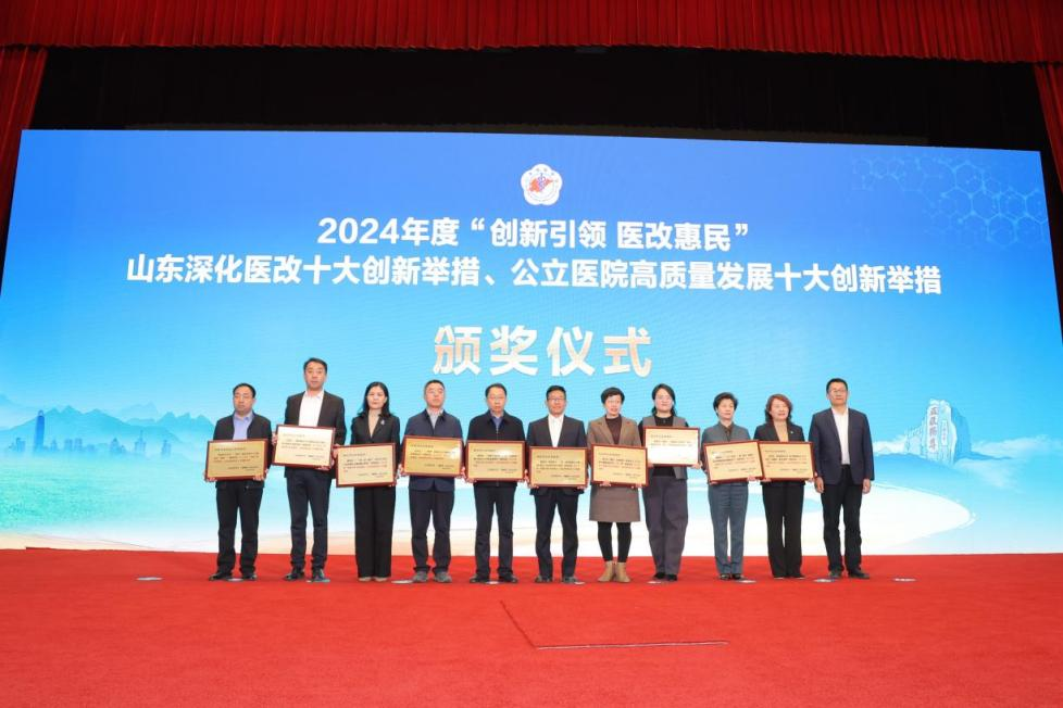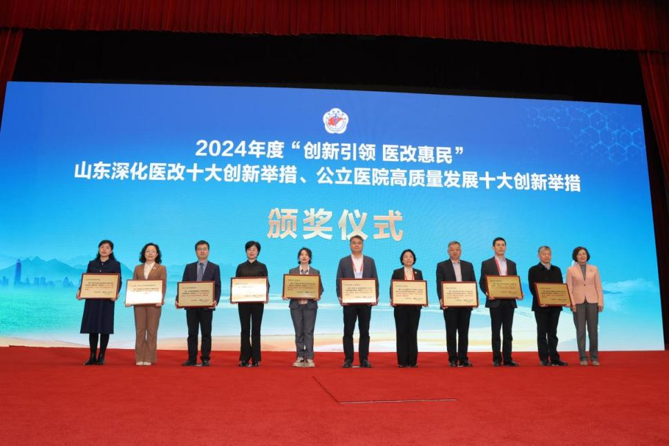 山东省医学会副会长王爱杰宣读2024年度“创新引领 医改惠民”山东深化医改十大创新举措、公立医院高质量发展十大创新举措推介结果