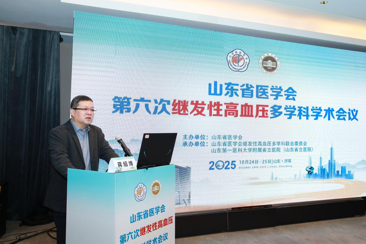 山东省医学会继发性高血压多学科联合委员会主任委员蒋绍博致辞,指出本次会议不仅是一次学术交流,更是一次思想的碰撞、技艺的切磋与跨学科的深度协作。提升我省继发性高血压相关疾病的诊治与服务水平,是对人民健康的庄严承诺,也是推动区域卫生事业高质量发展的重要任务。