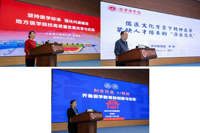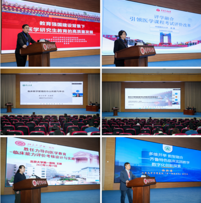 学术讲座阶段,9位国内知名专家带来了精彩的学术分享。管英俊围绕“地方医学院校高质量发展改革与实践”,阐述了医学标准与内涵建设的核心要义;李栋分享了儒医文化背景下精神医学紧缺人才培养的“济医范式”;马春红聚焦“AI 赋能齐鲁医学教育创新”,展现了技术与教育融合的实践成果;贾金忠、唐漫分别就医学研究生教育高质量发展、课程考试评价改革等主题展开深入解读,为与会者带来了丰富的学术启发;王淑珍以“临床教学管理的中山实践与探索”为主题介绍了中山大学在临床教学管理的实践与探索;谢阿娜、北京大学第一医院主任医师王颖分别从胜任力导向的角度分享了医学教育考核评价和临床评价与考核的相关内容;山东大学第一临床学院(齐鲁医院)教育处教育主管徐新博介绍了齐鲁特色临床实践教学数字化创新经验。