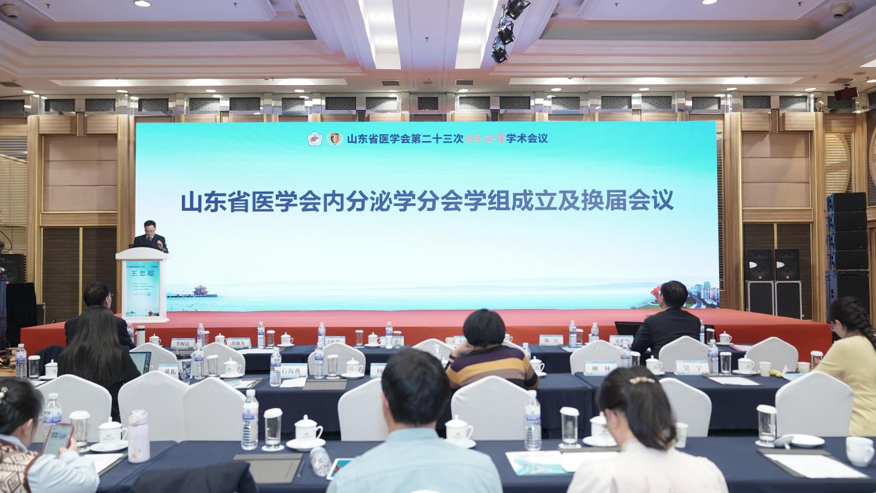 会议同期召开内分泌分会学组换届和成立会议,由山东省医学会内分泌学分会秘书王忠超主持,主任委员王颜刚致辞。完成了甲状腺学组、罕见病学组、基层学组、生长发育学组、青年学组、性腺学组、学术发展学组、肥胖学组、垂体-肾上腺学组等9个学组的换届工作和高尿酸血症和痛风学组、科普学组、骨质疏松学组、糖尿病血糖管理学组、脂肪肝学组、中西医结合学组、脂代谢学组、电解质紊乱学组等8个学组的成立工作。此次学组调整旨在顺应内分泌学科细分发展趋势,更好满足临床精准诊疗、科研协同创新的需求,不仅夯实了山东省内分泌学科发展的基础,更通过整合区域专业资源,为推动诊疗规范化、科研一体化起到积极的促进作用。