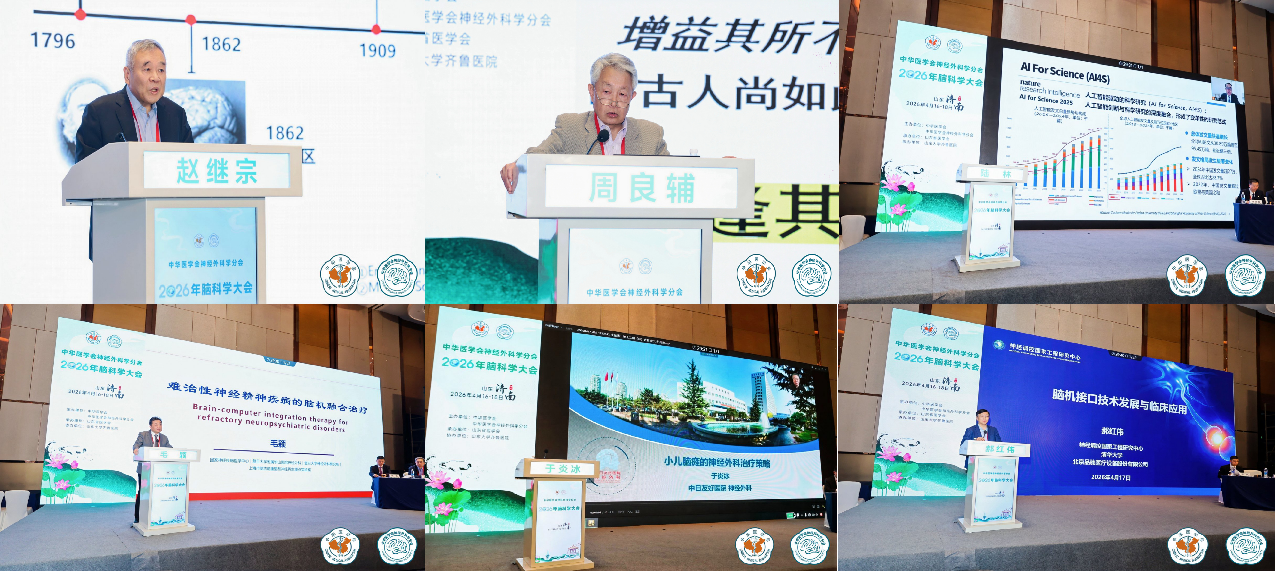 4月16日至18日,由中华医学会、中华医学会神经外科学分会主办,山东省医学会承办,山东大学齐鲁医院协办的中华医学会神经外科学分会2026年脑科学大会在济南成功召开,会议同期举办山东省医学会第十九次神经外科学术会议、2026齐鲁神经外科学术论坛。