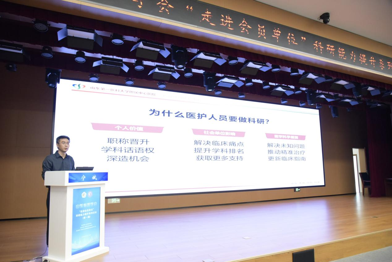 4月22日,由山东省医学会主办、济南市妇幼保健院承办的“走进会员单位”科研能力提升系列活动(第一期)在济南市妇幼保健院总院区成功举办。省医学会驻会副会长张林、济南市妇幼保健院党委书记聂文英等出席会议,济南市妇幼保健院院长韩炳娟主持会议。来自济南市有关医疗机构的两百余名医务工作者参加活动。